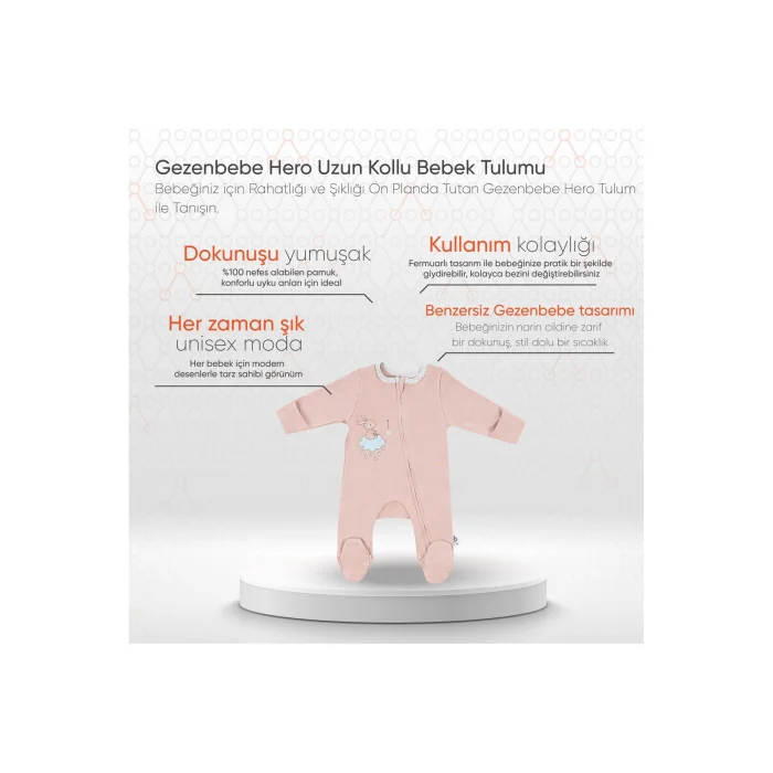 Product Description:Gezenbebe Hero Long Sleeve Baby Jumpsuit: Comfort and Style Together! Make every moment special with this jumpsuit that offers the highest comfort and elegance for your baby. Dedicated to the original heroes of Gezenbebe, this jumpsuit gently wraps your baby's soft skin. Standout Features:GEZENBEBE'S UNIQUE DESIGN: Much more than just a jumpsuit; Gezenbebe's statement of style with exquisite patterns. SOFT TOUCH: Hero Long Sleeve Baby Romper promises your baby a comfortable sleep with its 100% breathable cotton fabric. ORIGINAL AND ATTRACTIVE DESIGN: The iconic Gezenbebe patterns and signature mascots add a unique flair to our jumpsuit. UNISEX FASHION: Unisex design enriched with modern patterns keeps your baby stylish at all times. CONVENIENT AND PRACTICAL: Thanks to its zippered design, dressing and changing processes are even easier. FEEL QUALITY: We are constantly improving our product with customer feedback, and we do not compromise on our goal of providing the best for your baby. Technical Details:Size Options: Newborn, 0-3 months, 3-6 months, 6-9 monthsColor Options: Bunny, Elephant, Koala, Teddy (Organic). Don't forget to review the size chart when placing your order. With Gezenbebe's Hero Long Sleeve Baby Romper, your baby's comfort and style will be one step ahead. Experience the comfort and assurance of your baby with us!