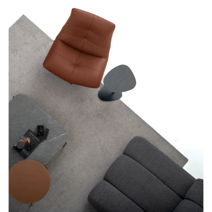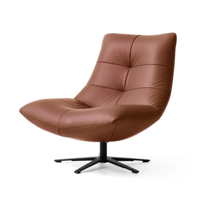 Product: Zen Tan Leather Metal Leg Swivel Armchair