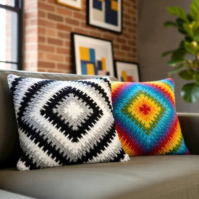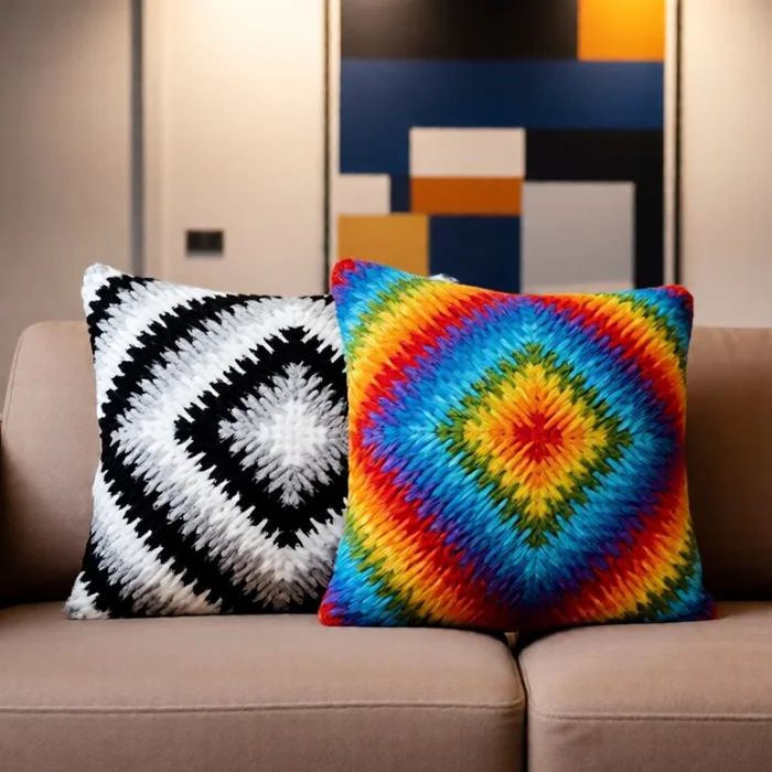 Rainbow & Kontra - Modern Colorful Hand-knitted Decorative Pillow | Set Of 2