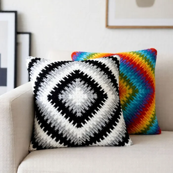 These decorative pillows, which are completely handcrafted; With its soft, voluminous and durable texture, it offers comfort not only visually but also physically. It makes the area where it is located on the sofa, armchair, bed or reading corner look warmer and more inviting.