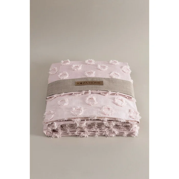 Sitra Powder Double Tassel Bedspread 230x250 2 Pillows 50x70 5032 This carefully crafted bedspread provides ample coverage with a generous size of 230x250 cm. The product set includes two 50x70 cm pillowcases. The elegant powder color adds calmness and elegance to your room. Thanks to its high-quality cotton content, it offers a soft and comfortable feeling. A bedspread effortlessly transforms your bedroom into a haven of tranquility, combining both comfort and aesthetics. Ideal for those looking for a tidy and stylish bedroom, the bedspread provides a polished and harmonious look. The circular tassel details on it reflect an original boho style and add a unique atmosphere to your room. The Sitra Double Tufted Bedspread is the perfect way to organize your bedroom and add a touch of style. Care Recommendation It is recommended to wash at 30 degrees. Bleaching should not be done. It does not require ironing. Lay-out drying is recommended. Dry cleaning should not be applied. Note: Actual colors may differ depending on lighting and monitor settings.