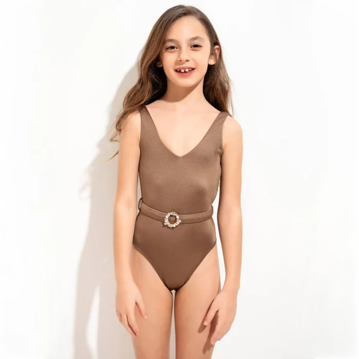 · HIGH QUALITY ITALIAN FABRIC · LYCRA® XTRA LIFE™ CERTIFICATE · UV PROTECTION · FULLY LINED · ROSE GOLD CRYSTAL PEARL EMBELLISHED BUCKLE
