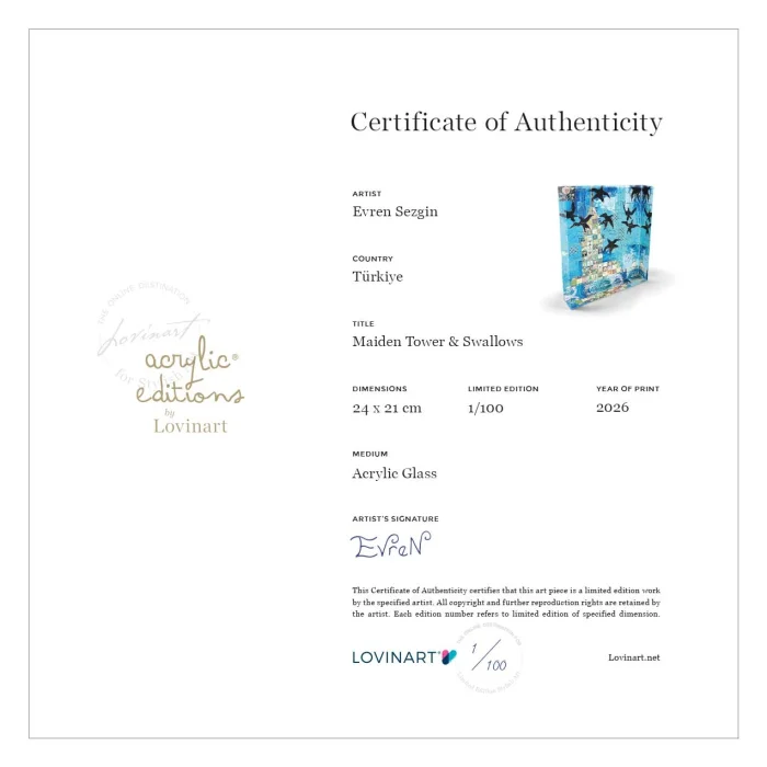 Product: Maiden Tower & Swallows (istanbul) By Evren Sezgin - Acrylic Glass Decorative Object
