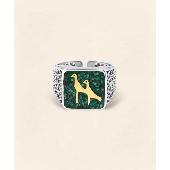 925 sterling silver, gold plated, natural lapis stone mosaic, handmade filigree ring