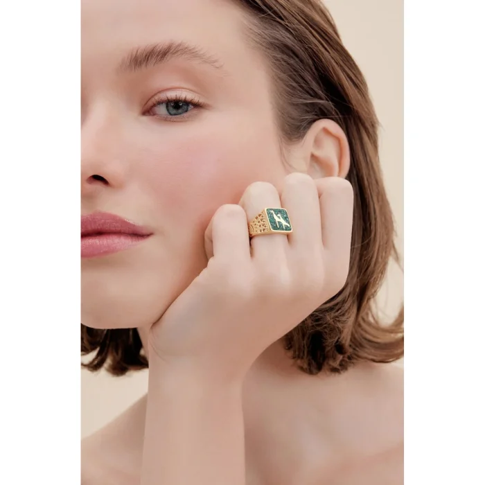925 sterling silver, gold plated, natural lapis stone mosaic, handmade filigree ring