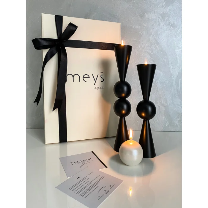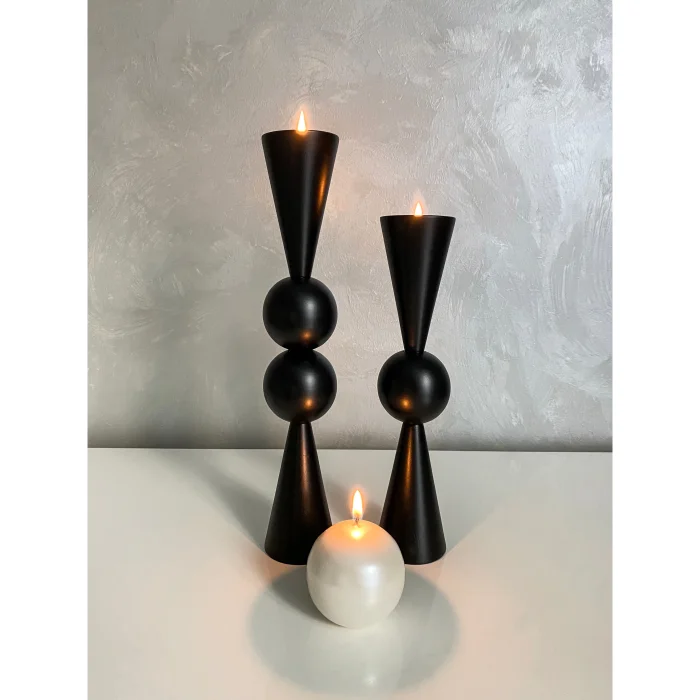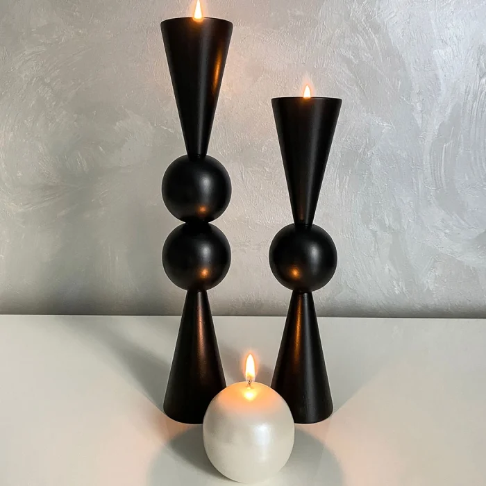 Oliva candle holder set is produced entirely by hand using solid wood.