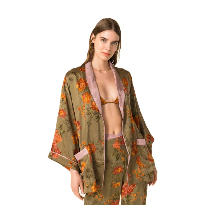 •Long bat sleeved robe with belted waist. •Full length 75 cm from the neck. •Soft silky vegan fabric.