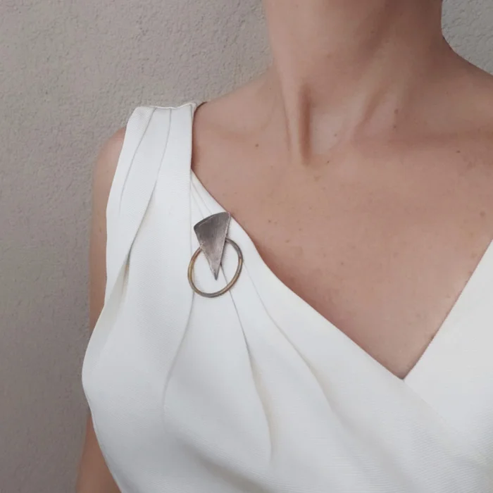 Unisex Brooch, pin made of Sterling Silver and brass.