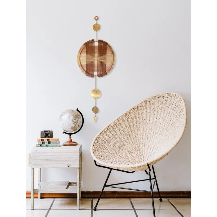 The unity of the geometric brass pieces we designed with the forms we created by hand weaving into the hoop.