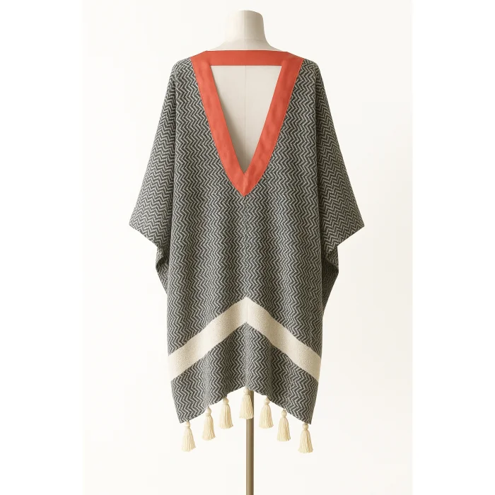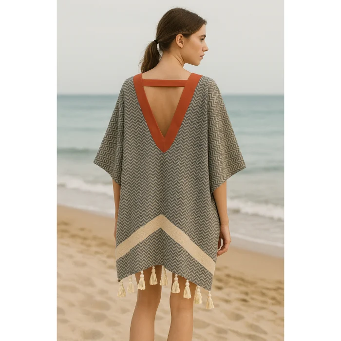 Product: Summer Dream Gray Kimono - Orange Stripe And Tassel Detailed Kimono (with Loincloth Gift)