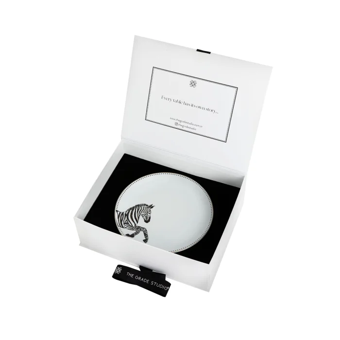 It is sold in 2 pieces. The contents of the box are 2 plates. Diameter: 22 cm. Fine porcelain of the highest quality is combined with state-of-the-art printing techniques. Our patterns are hand drawings. Our designs are decorated with real platinum. It will be sent with the velvet-covered protected box in the image.
