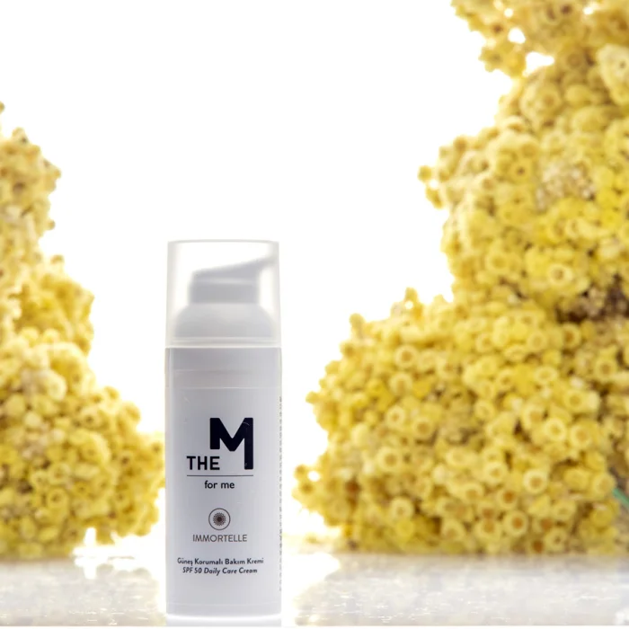 You can use the sunscreen effective day care cream of the series containing the immortelle flower and pomegranate seed extract to protect from the effects of aging while taking advantage of the sun. Due to its high protection factor of  SPF 50, it helps to protect the skin from the harmful effects of UVA and UVB. The immortelle flower protects the skin from the effects of aging and dark spots. It supports to moisten the skin. By creating an antioxidant barrier, pomegranate seed prevents free radicals caused by UV from damaging the structure of the skin and its DNA.