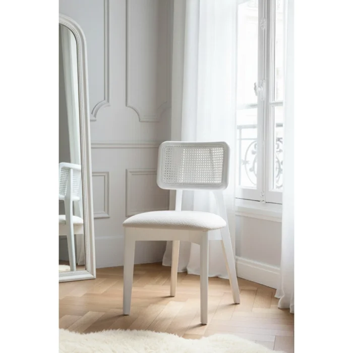 Chairs: 4 pieces, made of beech wood, with natural hazeran backs and ergonomic design.