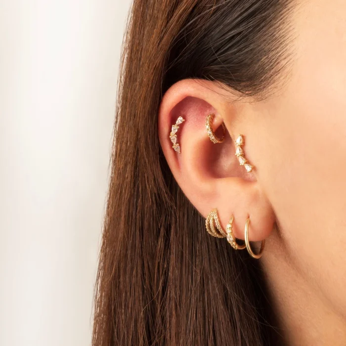 Product: 14k Gold 4 Stone Minimal Helix/cartilage Piercing