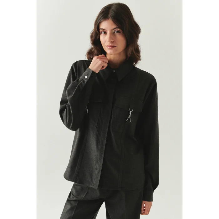 Long Sleeve Regular Woven Shirt With Pocket Accessories