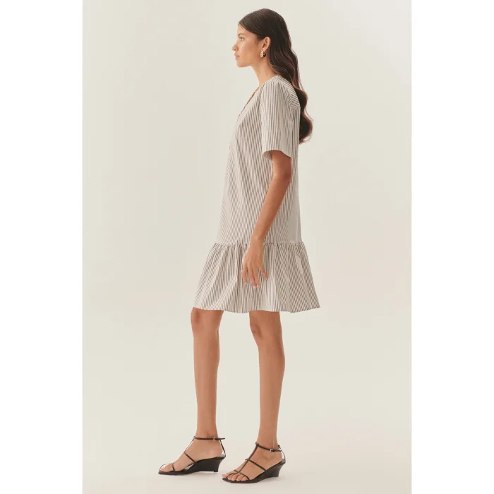 Product: Pleated, Relaxed Cut, Striped Cotton Dress With Buckle Detail On The Collar