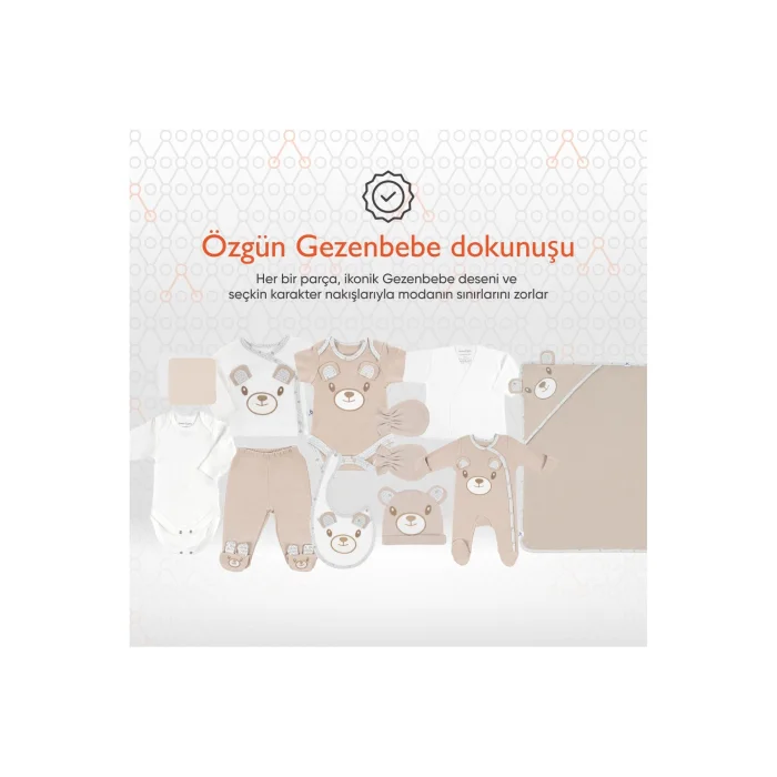 Product Description:Gezenbebe Hero Baby Hospital Outlet Set 11 Pieces: A Unique Set to Complete Your Baby's First Days! Meet Gezenbebe's 11-piece special set to welcome your newborn baby in the most stylish and comfortable way in its first steps. With its carefully selected pieces, iconic Gezenbebe patterns and quality, it is with you whenever your baby needs it. Set Contents: EMBROIDERED HAT: A hat decorated with original Gezenbebe heroes, which will keep your baby's head warm. EMBROIDERED BIB: An apron that protects your baby and is enriched with the four heroes of Gezenbebe.1 EMBROIDERED ZIBIN and 1 FLAT ZIP: Jumpers designed for your baby's comfort in two different designs. BOOTIES: Stylish pants that keep tiny feet warm. GLOVES: Baby's skin-friendly gloves. EMBROIDERED SHORT SLEEVE BODY and STRAIGHT LONG SLEEVE BODY: Two separate bodysuits for two different styles and uses. EMBROIDERED JUMPSUIT: Practical jumpsuit decorated with the original heroes of Gezenbebe. EMBROIDERED BLANKET: A soft blanket that will keep your baby warm and be side by side with him at all times.3 MOUTH CLOTHS: Functional and stylish diaper set. Prominent Features:GEZENBEBE SIGNATURE: The pinnacle of baby fashion with its unique Gezenbebe design and detailed embroidery. FULL PROTECTION: Every piece in the set has been carefully selected for your baby's comfort and elegance. UNIQUE DESIGN OF GEZENBEBE: Elephant, Koala, Teddy Bear and Rabbit; The four beloved heroes of Gezenbebe bring your baby together with a unique elegance with this set.ULTIMATE COMFORT: Made of 100% breathable cotton fabric, this set offers your baby the highest comfort. UNISEX DESIGN: Style suitable for every baby with trendy patterns. EASY TO USE: Quick and convenient operation with nickel-free snap buttons. GREAT GIFT: The perfect gift option for your relatives with a newborn baby. Technical Details:Size Options: NewbornColor Options: Bunny, Elephant, Koala, Teddy (Organic). With the Gezenbebe Hero Baby Hospital Exit Set 11 Pieces, every need of your baby has been considered. Your special moments become even more valuable with the quality and elegance of Gezenbebe.