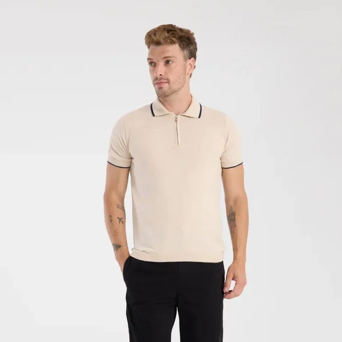 Product: 100% Cotton Half-zip Knit T-shirt With Contrast Stripe Detail