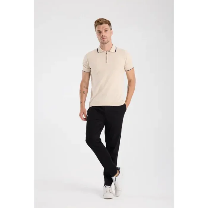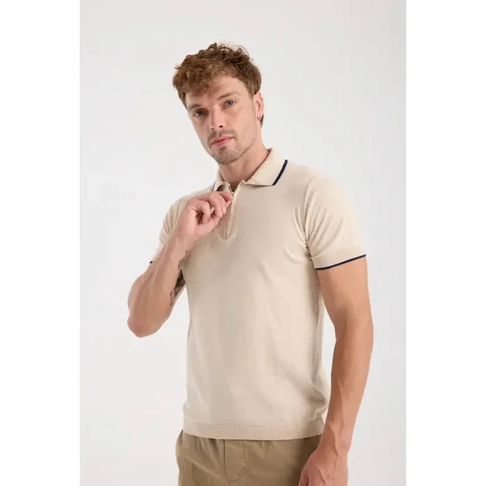 Product: 100% Cotton Half-zip Knit T-shirt With Contrast Stripe Detail