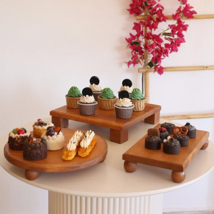 Product: 3 Piece 29 Cm Risus, 17x30 Cm Risus, 30x30 Cm Tiyos Wooden Breakfast Serving Plate Set