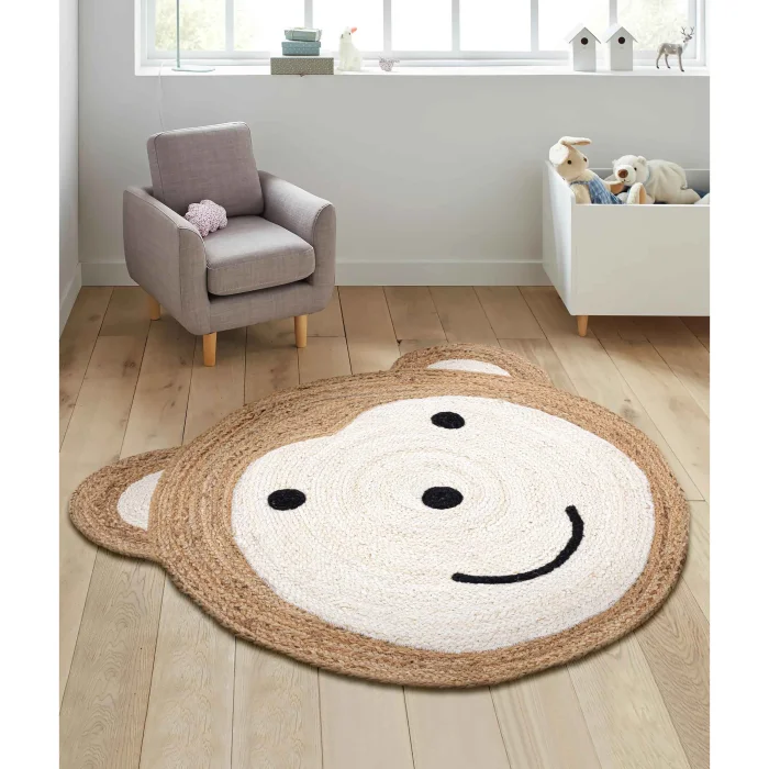 Natura Monkey Figured Jute Carpet Wicker Carpet Children's Room Carpet 00028A The product is made of natural jute material. It is hand-woven. The diameter of the carpet is 90 cm. The cute monkey figure sparks your child's imagination, making their play more enjoyable. It is an excellent decoration item for children's rooms, kindergartens and playrooms. The simple and stylish design of natural jute easily adapts to different decoration styles. It adds a natural and elegant touch to home décor. Natura Monkey Figure Jute Carpet decorates children's rooms with a cute monkey figure, making your child's playground more enjoyable. It is both a stylish and functional decoration item. It should be wiped with salt water and a damp cloth. It is not recommended to carry out washing. Suitable for outdoor uses. You can clean by shaking or sweeping. Note: Actual colors may differ depending on lighting and monitor settings.