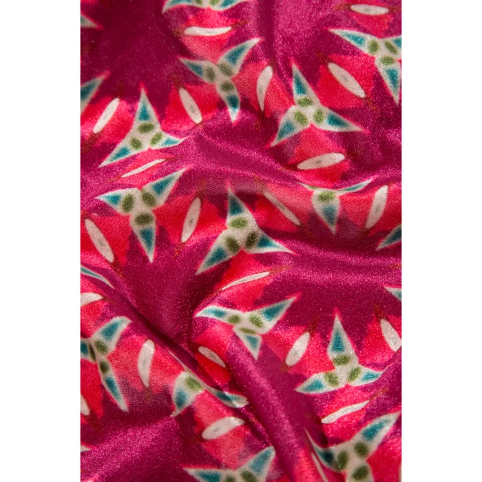*Patterns are created from the works of Artist Defne Camcıoğlu, *95% Polyester 5% Elastane, *The product is made of velvet fabric with soft texture and elegant sheen, * The work, which consists of geometric patterns, is printed on velvet fabric by digital printing method, * The product offers a stylish look with a strapless collar and mini size. CARE RECOMMENDATIONS: * Washing can be done at 30 degrees, *Bleach cannot be used, *Do not dry in the machine.