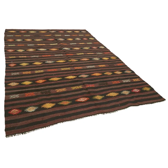 Anatolian Kilim Rug 204 cm width and 310 cm length and the pile height is 5mm, the approximate weight of the rug is 9 kg. It’s % 100 hand knotted wool and goat hair rug. It’s made from the natural dye.
