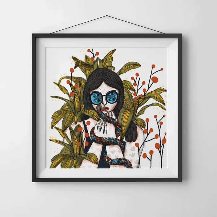 Drawings made with markers, dry and watercolors, then printed in giclée quality on 210g matte Hahnemühle enhanced paper. This technique; Art printing can capture 98% of the original colors, and these colors are preserved for about 200 years in a healthy way. *Will be sent by roll without frame. *Print size is 29x29. *Frame allowances are given extra. *Not dimensioned
