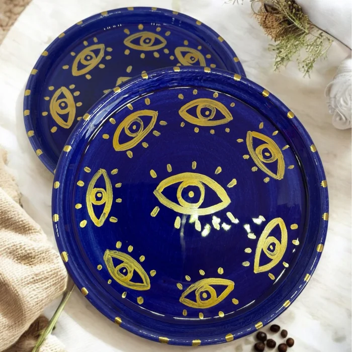 It is handmade. It is sent in two pieces. It is suitable for saucers, cookies, small presentations.