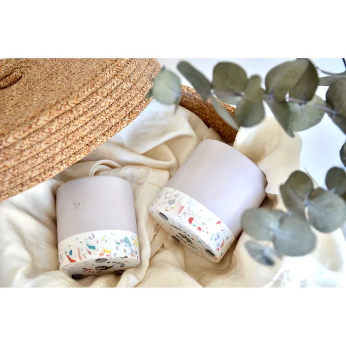 SOLILU candles consist of natural Soy Wax and cotton wick. Candle jars are made from Jesmonite AC100 which is eco-friendly and a water-based composite material. Jesmonite material is safe to use and contains no solvents or VOCs.