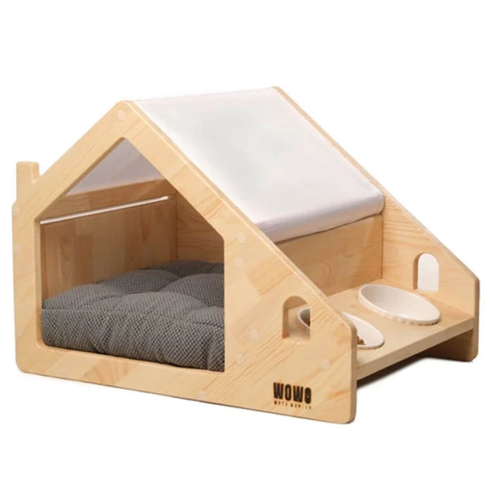 - Material: High-quality pine wood, soft cushion, elegant two porcelain bowls, removable Velcro fabric cover.