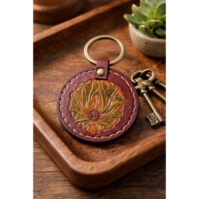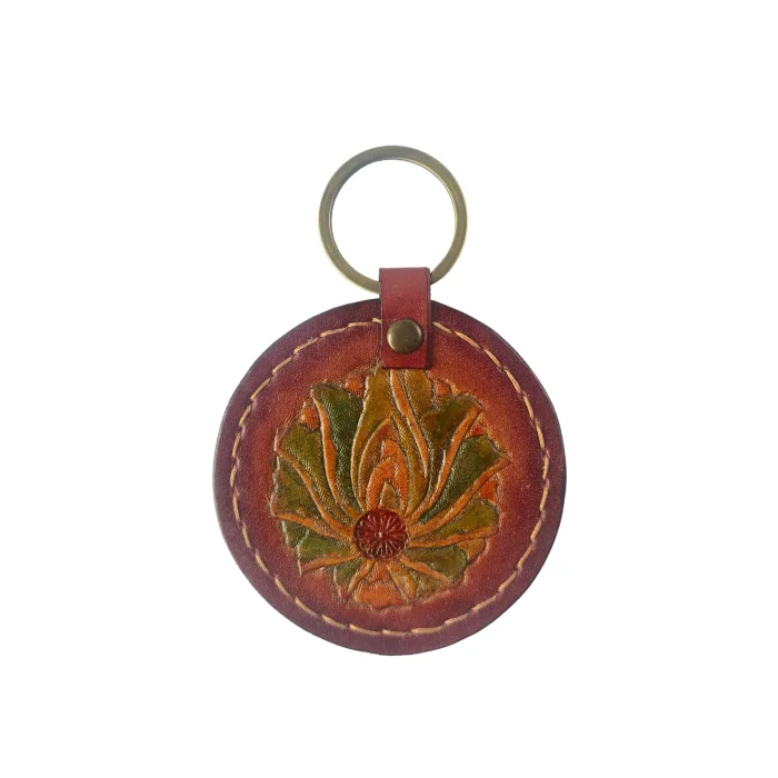 Product: Hand-embroidered Leather Keychain - Natural & Women's Handcrafted