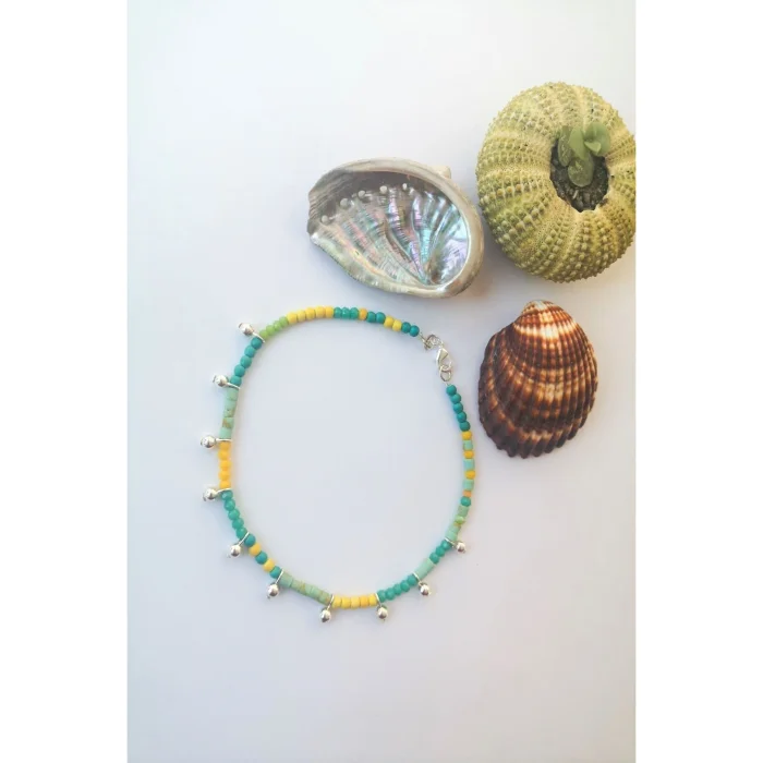Product: Women's Green Silver Beaded Natural Stone Anklet