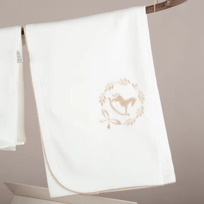 *Our beige crochet decorated wreathed horse embroidered piping blanket is designed to wrap your baby softly so that his sleep is not interrupted during the newborn period, and also to accompany your baby's innocent sleep while he is growing.