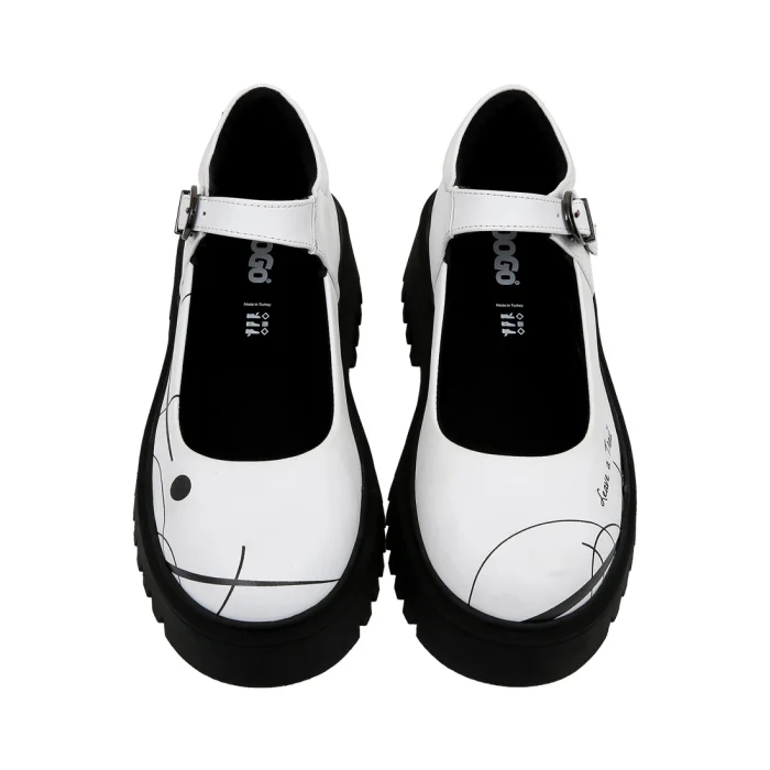 It combines the strong effect of minimalism and the striking elegance of black and white contrast with the Mary Jane loafer form. This model, which creates a striking style even in simple combinations with its 100% vegan structure and modern thick sole, complements the classic wrist band detail with a contemporary stance. Standing out with its nature-friendly production approach, Leave a Trail will allow you to leave a mark with your values as well as your style!