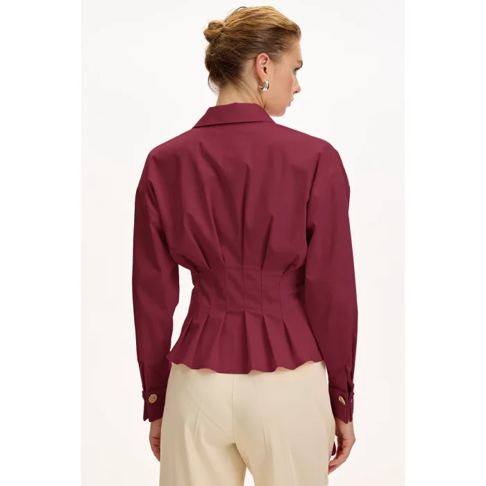 Product: Long Sleeve Pleated Poplin Shirt With Waist Fit