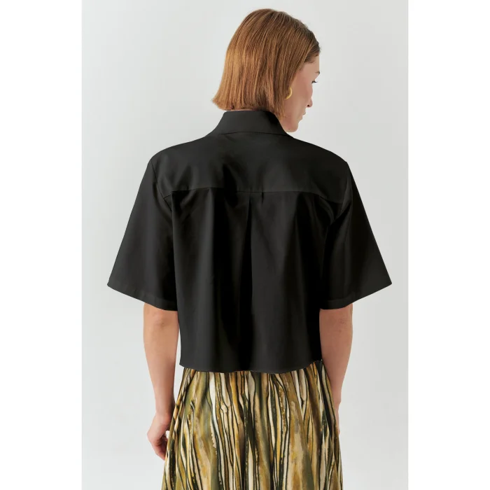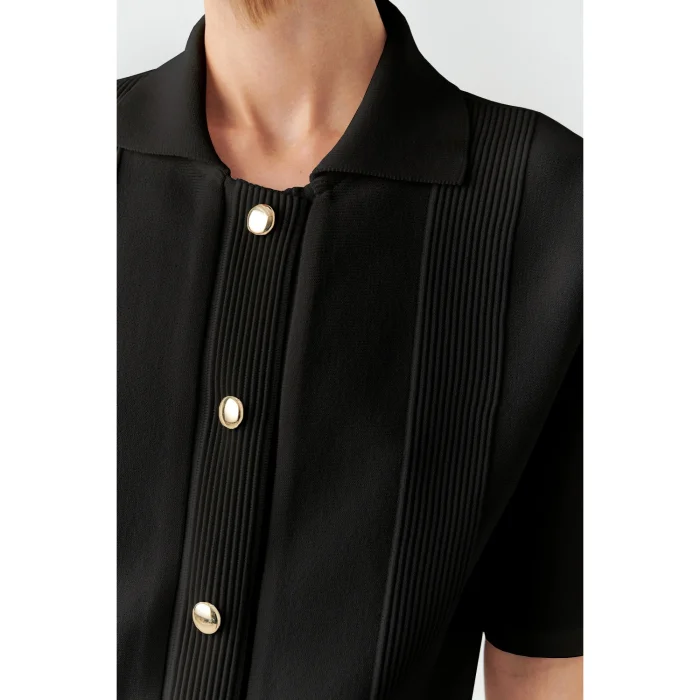 Standing out with its minimalist design and elegant texture of woven fabric, this short-sleeved shirt offers comfort all day long thanks to its regular cut. The gold button details on the front add a stylish touch to modern simplicity. This piece, which can be easily combined with both skirts and trousers, will be one of the versatile and timeless options in your wardrobe.