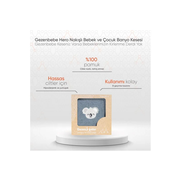 Product Description:Gezenbebe Hero Embroidered Baby and Kids Bath Pouch: Gentle Cleaning for Little Heroes! Gezenbebe Hero Embroidered Baby and Children's Bath Pouch is specially designed to clean the skin of the little ones in the most gentle way. This pastel-toned pouch features detailed embroidery of Gezenbebe's adorable heroes, Elephant, Rabbit, Teddy Bear and Koala, making your bathing ritual more fun. While the bias from the iconic Gezenbebe pattern on the edge adds a stylish touch to the product, it offers a practical use thanks to its seizure feature. In perfect harmony with the series' bathrobe and poncho collection, this scrub makes both babies and children's bathing moments comfortable and enjoyable. Salient Features:ORIGINAL GEZENBEBE DESIGN: Gezenbebe adds a stylish touch to your baby's bathing ritual with cute hero embroidery. QUALITY COTTON MATERIAL: The premium cotton fabric, which does not irritate the skin, gently cleanses your baby's skin and leaves it feeling soft. IDEAL FOR SENSITIVE SKIN: It is hypoallergenic for your baby's sensitive skin and minimizes the risk of allergies. PRACTICAL DESIGN: It offers a practical use thanks to its seizure feature. UNIQUE GIFT OPTION: With its pastel colors and unisex design, it offers a perfect gift option for birthdays or special occasions. COLORED WITH NATURAL DYE: In order to protect the skin, only water-based dyes are used in printing. FOCUSED ON CUSTOMER SATISFACTION: We are constantly evaluating customer feedback and improving our products in order to offer the best for your baby. Technical Details:Fabric Quality: It is produced using 100% natural cotton. In this way, it is ideal for your baby's sensitive skin; It has a soft, breathable and skin-friendly structure. Dimensions: 15x21Color Options: Bunny (Rabbit), Elephant (Elephant), Koala (Koala) and Teddy (Teddy)Care Instructions: Wash at 30 degrees and dry without exposing to direct sunlight. Let your bath time turn into a stylish and functional experience with the Gezenbebe Hero Embroidered Baby and Kids Bath Pouch. With this product designed with your baby's skin in mind, make every moment you spend with them more special!