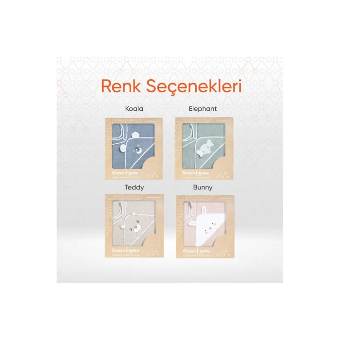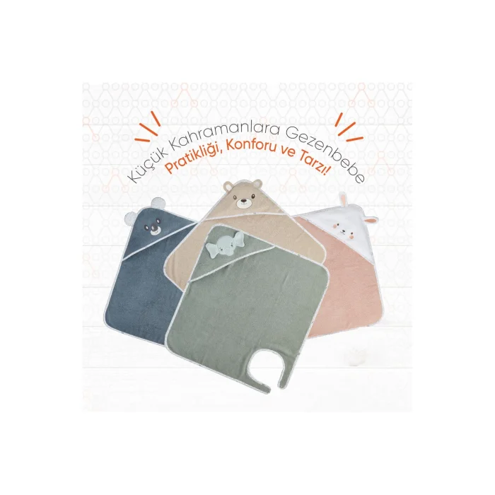 Product Description:Gezenbebe Hero Swaddling Baby Towel with Hero Head: Comfortable moments with your little hero with the touch of Gezenbebe! Gezenbebe Hero Swaddling Baby Towel with Hero Hood has a functional and stylish design for your little hero. The soft fabric in pastel tones gently dries your baby's sensitive skin, while the headdress-shaped embroidery of Gezenbebe's cute heroes, Elephant, Rabbit, Teddy Bear and Koala, provides post-bath fun. The iconic Gezenbebe pattern on the piping of the product completes your elegance. Thanks to the specially designed snap section, you can dry your newborn as comfortably as if you were holding it in swaddling. This special design, which makes life easier for both parents and babies, will make your bathing ritual enjoyable and special. Salient Features:GEZENBEBE DESIGN: With Gezenbebe's iconic pattern and cute hero embroidered headpiece, this swaddle wash towel will be indispensable for the little ones after bathing. QUALITY COTTON FABRIC: With its ultra-soft and breathable fabric, Gezenbebe Hero Hero Swaddling Baby Towel with Hero Hood gently wraps and dries your baby's sensitive skin. FUNCTIONAL DESIGN: With its cute hero cap and practical snap structure, it offers a fun experience for babies and a useful experience for parents. PROTECTS SENSITIVE SKIN: Safe and comfortable for all babies with its hypoallergenic structure, easy washability and odor-free feature.IDEAL GIFT OPTION: Suitable for both male and female babies, this towel is the perfect gift alternative for birthdays, baby showers and other special occasions. ECOLOGICAL PRINTING: Prints made with water-based inks are both environmentally friendly and harmless to babies. WE LISTEN TO YOU: We make continuous improvements, taking into account customer feedback, to guarantee quality, comfort and fit. Technical Details:Material: 100% cottonFeatures: Ultra-soft and breathable structure, suitable for babies' sensitive skinDimensions: 75 cm x 80 cmDesign: Snap structure; It offers a comfortable swaddling experience by wrapping your baby tightlyColor Options: Bunny (Rabbit), Elephant (Elephant), Koala (Koala) and Teddy (Teddy) Care Instructions: Wash at 30 degrees and dry without exposing to direct sunlight. Witness your little hero having warm and comfortable moments after bathing with the Gezenbebe Hero Hero Swaddling Baby Towel with a Hood; Make every moment special with this product where quality and elegance meet.