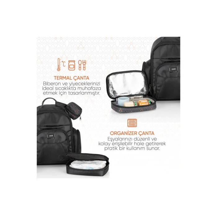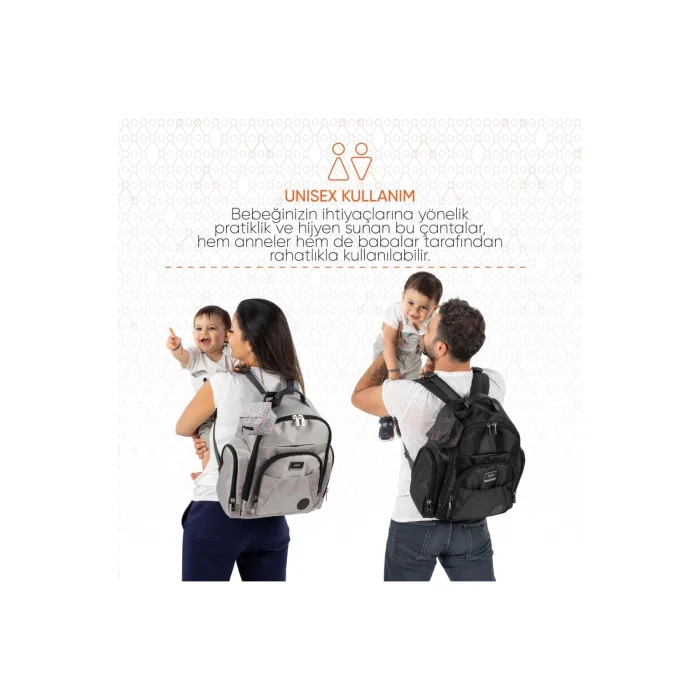 Gezenbebe Multifunctional Customizable Family Baby Care Backpack with BabyStyle and Comfort at Every Step: The Gezenbebe Difference in Baby CareGezenbebe's Multifunctional Parent & Baby Care Backpack combines the style and functionality that our modern parents need. Designed to keep up with your on-the-go lifestyle, this bag is both stylish and unique, with Gezenbebe's iconic inner lining pattern and customizable initials. Packed with a range of smart features, this elegant bag is designed to meet all the needs of both you and your baby, with built-in two pouch pouches, a pacifier pouch, isolated bottle pockets, a practical mini wallet and a changing bag designed for quick access. Standout Features:CUSTOMIZABLE DESIGN:Your initials can be added to the front of the bag to add a personal touch.ICONIC INNER LINING:The distinctive Gezenbebe patterned lining allows you to show off your style. WIDE RANGE OF STORAGE SOLUTIONS & THERMALITY: Two built-in pouch bags provide separate compartments for both wet and dry items. One of the bags has thermal properties, allowing you to keep your baby's food warm or cold. ISOLATED COMPARTMENT FOR PEPPERS: Isolated pockets to keep your baby bottles at the temperature you want. THOUGHTFUL STORAGE: Everything is at hand with a PVC mini bag for wet items, a built-in pacifier bag, a mini wallet and a changing bag. PRACTICAL INTERIOR ORGANIZATION: Thanks to the rubber pockets and mesh eyes, your belongings are always organized. DURABLE MATERIAL: Its high-quality 1900D fabric offers water resistance and long-term use. COMFORTABLE CARRYING: It provides a comfortable carrying experience with padded shoulder straps, back panel and magnetic buckles that can be hung on the stroller. CARRYING OPTIONS: Functional belt that can be attached to the handles of suitcases. SAFE STORAGE FOR ELECTRONIC DEVICES:Special pockets for tablets and laptops up to 15.6" in size.STYLISH GEZENBEBE PATTERNED CASE:Our bag comes with a stylish case decorated with the iconic Gezenbebe pattern. This case is perfect for protecting your bag and can also be used as an organizing and storage bag. Technical Details:Color OptionsBlack (Black), Grey (Gray)Carry both elegance and practicality with you with Gezenbebe's Multifunctional Parent & Baby Care Backpack. Designed for all your and your baby's needs, this bag offers a unique design that will provide comfort and ease all day long. Enjoy comfort and style at every step with Gezenbebe.