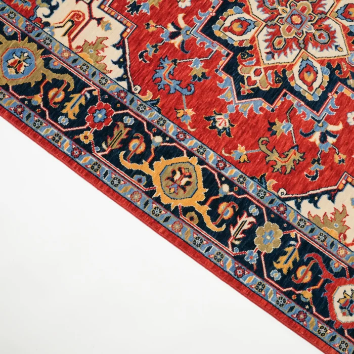 Tempus Series Anatolian Medallion Patterned Red Wool Special Loom Carpet is a collection piece specially produced by Halıcızade. Woven with wool yarns, this rug is a great choice for those looking for natural rugs. Thanks to its medium thickness and dense weaving, it does not collect dust and is very comfortable to use. The Tempus Series Anatolian Medallion Patterned Red Wool Special Loom Carpet, which bears the tree of life symbol that shows that it is specially woven for Halıcızade, was woven in the Aegean Region of Anatolia. This carpet, which is a combination of modern technology and deep-rooted weaving culture, draws attention with its hand-woven appearance. The symmetrical patterns in the middle of this carpet, which is decorated with shades of white and blue on the red main color, are adorned with floral motifs reflecting the heritage and history of Anatolia. Tempus Series adapts to every space with different size options that contain Halıcızade's 20 years of experience and adds a unique style to your home with its authentic patterns. Tempus series carpets are produced entirely with wool natural yarns and are an excellent option for those looking for naturalness. Thanks to its medium-thick dense weaving, it does not hold dust and is very comfortable to use. It has the appearance of a hand-woven carpet with its special weaving technique and brings the classic carpet texture to your home. The tree of life icon exclusive to Halıcızade makes these carpets unique and offers a collection that you won't find anywhere else. These carpets, woven in the Aegean Region, combine the deep-rooted weaving culture of the region with modern technology. It can be used in various parts of the living space such as living room, living room, entrance, bedroom.