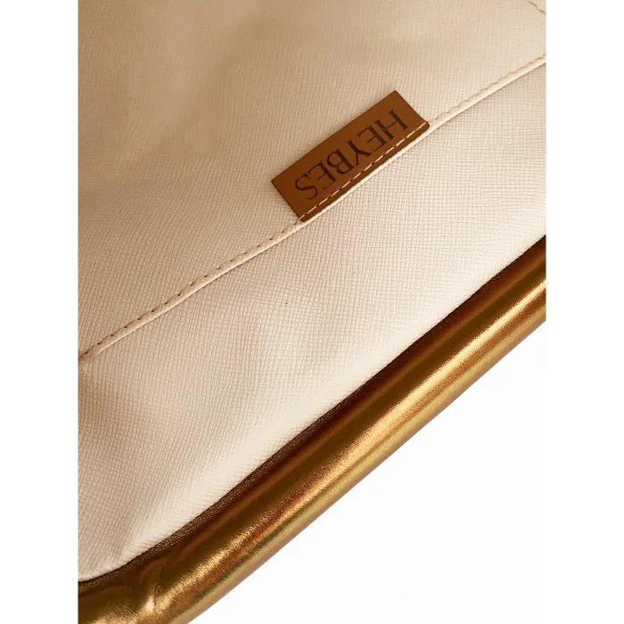 It is made of shiny faux leather. The interior is lined with artificial leather and has 1 inner pocket. It measures 30x14x10 cm (Width x Height x Depth). Suitable for both daily and night use.
