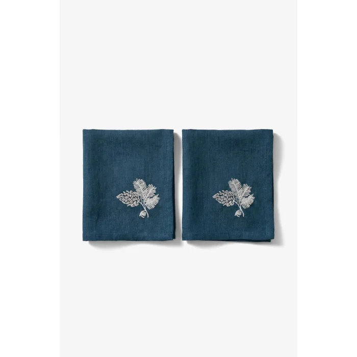 2 Pieces Lona Cone Embroidered Linen Napkin (Navy Blue)