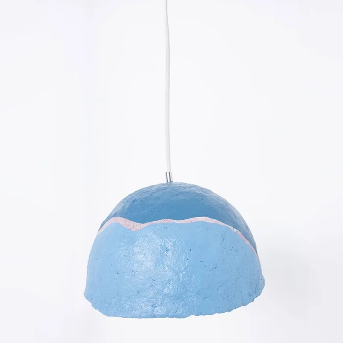 are carefully handcrafted with the VAULT lamp, recycled paper, egg cartons, natural pigments and water-based paints. Its lightweight yet durable construction offers an environmentally friendly lighting option and is produced in line with sustainability principles.