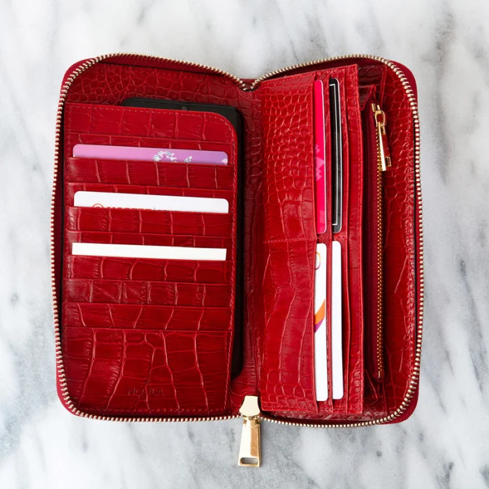 Product: Croc Print Zip Around Leather Wallet Large