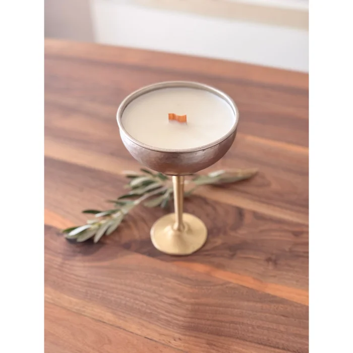 Product: Salud Copper Goblet Olive Candle - Nickel Finish