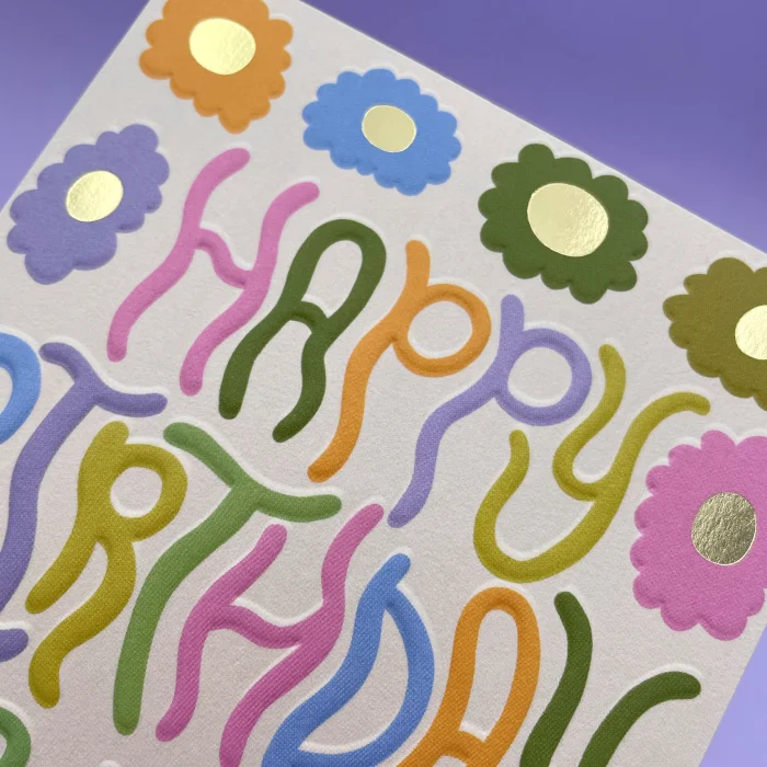 Embossed & golf foil finish. 162mm x 114mm with a lilac envelope