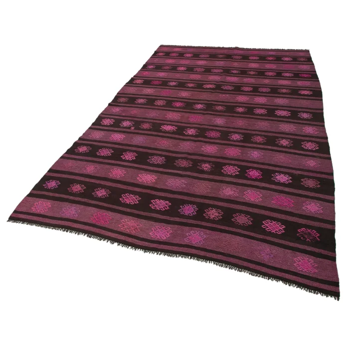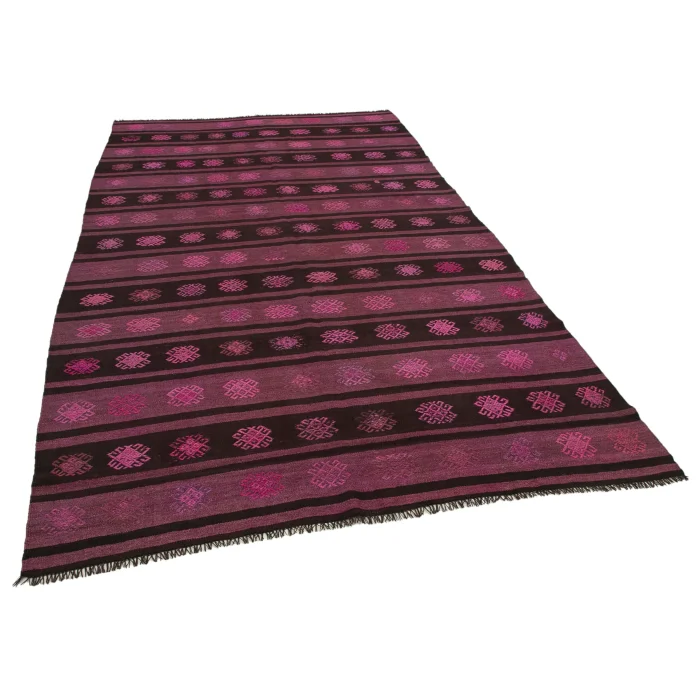Vintage Cicim Rug is 176 cm wide, 315 cm long, 5 mm thick, and weighs an average of 12 kg. It is made of hand-spun 100% Organic Wool and Bristle. Root dye obtained naturally is used. / Vintage Cecim kilims are on 176 cm widht and 315 cm lenght and the pile height is 5mm, the approximate weight of the rug is 12 kg. It's 100% handknotted wool and goat hair rug. It's made from the natural dye.