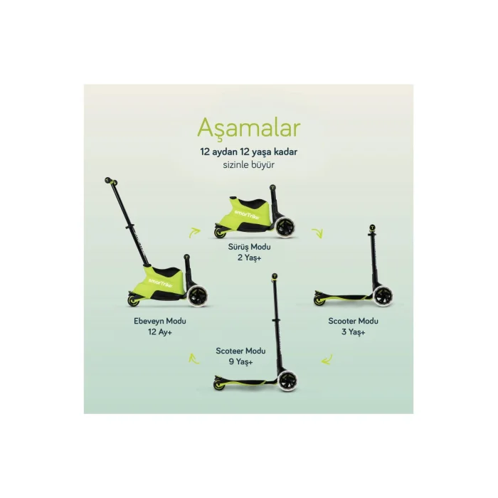 SmarTrike Xtend Grow Ride On ScooterWith Your Little Explorers On Their First Adventures (12 Months - 12 Years)! In your mini adventurer's first explorations, SmarTrike Xtend Ride On not only supports them, but also takes their little explorer's adventure of exploring the world to the next level! Their first journey, their first speed, their first smile; Experience your little ones' growth journey to the fullest and with fun with this unique Ride On, which will witness all these precious memories. A giant friend for little hearts, SmarTrike Xtend will be with your children from their first steps and will give them the freedom to explore their path, adventurous memories and, of course, unlimited fun! Xtend Ride-on starts as a tool that can be used under parental control, and when your kids get past the riding stage, you can quickly and easily remove the seat, extend the handlebars, and let your kids ride. Highlights:• Two-in-One Design: Both Ride-on (1-3 Years), scooter (3-12 Years); Fun and instructive moments at every stage of your little ones with Xtend!• Growable Footboard: The Xtend Scooter's 3-stage footboard grows with your child and becomes a loyal companion for years to come.• Safe and Comfortable: With its soft seat and secure structure, it prioritizes the comfort and safety of your little ones.• Storage Space: The Xtend Ride-on's built-in seat storage box is perfect for all your child's essentials and is also suitable for storing the handlebars after the riding phase is over.• Easy Folding: Fold your Xtend Scooter with the push of a button with the super easy and convenient folding mechanism.• Bright LED Wheels: With its 142mm LED wheels, it will be with your child even at night!• Innovative Design: A fun and innovative design that will improve your children's motor skills.• Supportive Customer Service: With our 2-year warranty, with a professional customer service team to support you and your child every step of the way (100%MMM Medizane Customer Satisfaction) We've got you covered. Give your child not just a toy, but a small but precious friend who gives them confidence and courage on their first journey with SmarTrike Xtend Ride On. Because a ride on not only adds movement to your child's life, but also instills in them the love and freedom to explore the world. Celebrate your child's first journey and be a part of their special journey. Because with Xtend, every moment will be a stepping stone to the next; Every smile will give birth to a new memory! Safely invite your little ones to this adventure and be with them every step of the way on this unique journey! Color Options: Pink, Blue, Orange, Lime