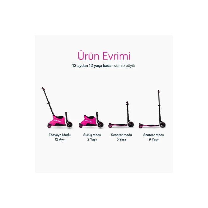 SmarTrike Xtend Grow Ride On ScooterWith Your Little Explorers On Their First Adventures (12 Months - 12 Years)! In your mini adventurer's first explorations, SmarTrike Xtend Ride On not only supports them, but also takes their little explorer's adventure of exploring the world to the next level! Their first journey, their first speed, their first smile; Experience your little ones' growth journey to the fullest and with fun with this unique Ride On, which will witness all these precious memories. A giant friend for little hearts, SmarTrike Xtend will be with your children from their first steps and will give them the freedom to explore their path, adventurous memories and, of course, unlimited fun! Xtend Ride-on starts as a tool that can be used under parental control, and when your kids get past the riding stage, you can quickly and easily remove the seat, extend the handlebars, and let your kids ride. Highlights:• Two-in-One Design: Both Ride-on (1-3 Years), scooter (3-12 Years); Fun and instructive moments at every stage of your little ones with Xtend!• Growable Footboard: The Xtend Scooter's 3-stage footboard grows with your child and becomes a loyal companion for years to come.• Safe and Comfortable: With its soft seat and secure structure, it prioritizes the comfort and safety of your little ones.• Storage Space: The Xtend Ride-on's built-in seat storage box is perfect for all your child's essentials and is also suitable for storing the handlebars after the riding phase is over.• Easy Folding: Fold your Xtend Scooter with the push of a button with the super easy and convenient folding mechanism.• Bright LED Wheels: With its 142mm LED wheels, it will be with your child even at night!• Innovative Design: A fun and innovative design that will improve your children's motor skills.• Supportive Customer Service: With our 2-year warranty, with a professional customer service team to support you and your child every step of the way (100%MMM Medizane Customer Satisfaction) We've got you covered. Give your child not just a toy, but a small but precious friend who gives them confidence and courage on their first journey with SmarTrike Xtend Ride On. Because a ride on not only adds movement to your child's life, but also instills in them the love and freedom to explore the world. Celebrate your child's first journey and be a part of their special journey. Because with Xtend, every moment will be a stepping stone to the next; Every smile will give birth to a new memory! Safely invite your little ones to this adventure and be with them every step of the way on this unique journey! Color Options: Pink, Blue, Orange, Lime